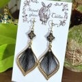 エスニックデザイン♡エレガントリーフピアス ブラック ハンドメイド No.985