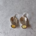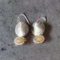 イエローベージュに遊色が美しく煌めくオパールをらふなシルバープレートに添えてシルバーピアスに仕立てまし。