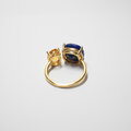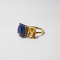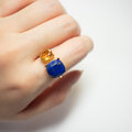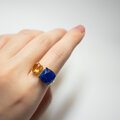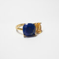 深い瑠璃色のラピスラズリと、芳醇な輝きを放つブランデーシトリンを組み合わせたフォークリングです。
