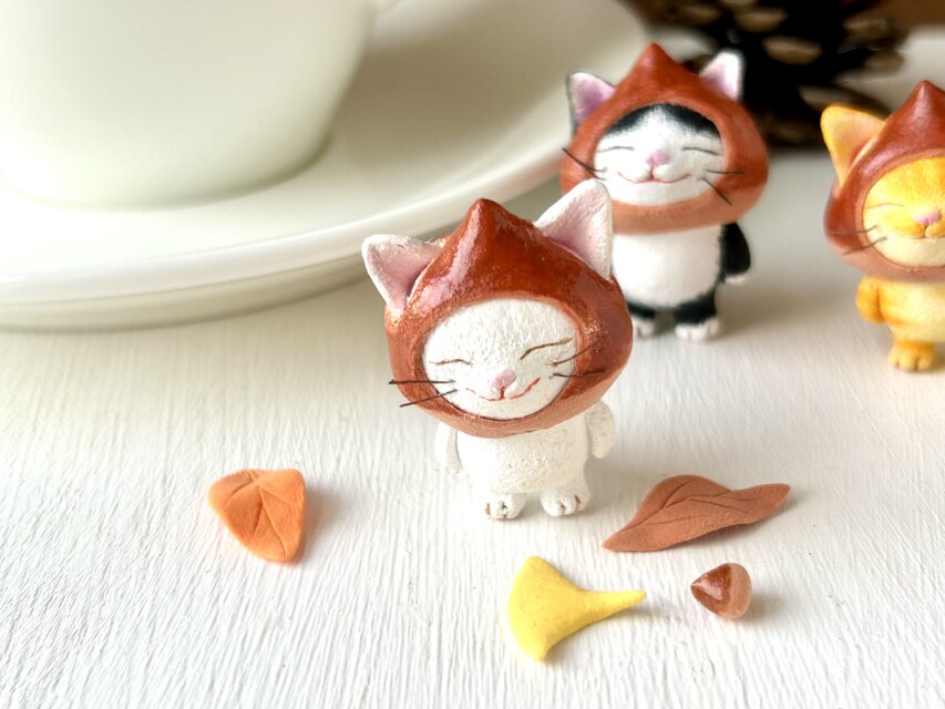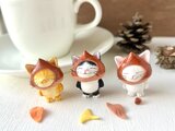 猫さん、栗、葉っぱ3枚のセットでお届けします。