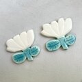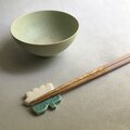 トルコ釉のブルーが涼しげなお花のデザインの箸置きです。