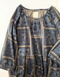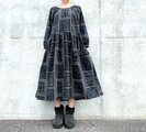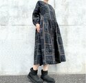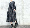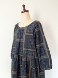 すずらん草花柄*大人のナチュラル長袖ワンピース*ヴィンテージハンカチコーデュロイ*ポケット付*綿100%*アッシュネイビー