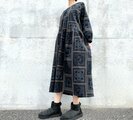 国産コットン100%◎ふんわりダブルガーゼ*シンプル無地の長袖ワンピース*フリーサイズ*ポケット付*ダークネイビーリピーターです。 ワンピースだけど着替えが楽々で、着心地よいです。 中にタートルを着用して重ね着が楽しめますね。