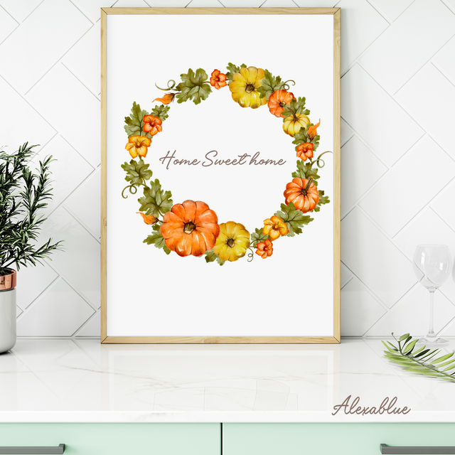 秋 ポスター / パンプキンリース / 秋インテリア / 北欧風 / おしゃれ ウォールアート / ハロウィン デコレーション / 玄関ポスター / リビングインテリア / 季節の模様替え / Thanksgiving decor