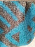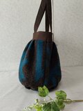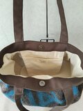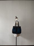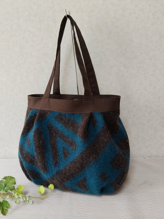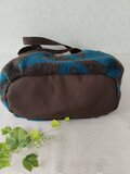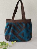 濃茶に深みのあるブルーの幾何学模様が素敵な生地でタック入りのトートを作製しました。