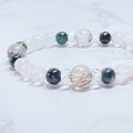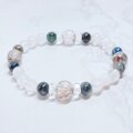 こちらの天然石を組み合わせ、神秘的でシンプルなデザインのブレスレットに仕上げました。