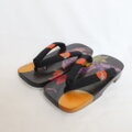 寒い地方の上質な国産桐(軽くて桐にしては丈夫で下駄に適した材料です)。裏貼り付。刺繍の高級鼻緒を挿げました。