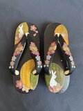 塗下駄の絵柄の美しさに感激致しました 25.5cm 幅広 甲高 合うサイズの履物に苦戦して居ります 今回 貴重な2Lサイズを見つけて嬉しくなり注文させて頂きました 取引中にメッセージを頂き 鼻緒の加減を聞いて頂けて良かったです 緩めをお願いした所 ピッタリでした\(^o^)/ 可愛いウサギさんの素敵な作品うぇおありがとうございました