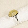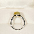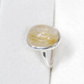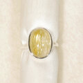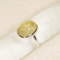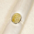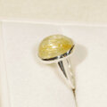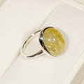 金色の針がたくさん入った、ぷっくりとしたルチルクォーツをふくりん留めした指輪です。