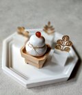 アロマストーンの鏡餅はとても小さくて指先でつまめるサイズ。松竹梅のお飾り3点も組み合わせた鏡餅セットが出来ました。