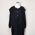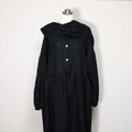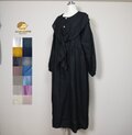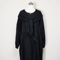 カラーリネン◆セーラーりぼんのふわっとワンピース 長袖◆黒◆フリーサイズ(中厚、リネン100%)