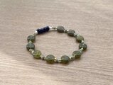 夜を思わせるディープネイビーのヴィンテージビーズをアクセントに、温もりあるオリーブグリーンを組み合わせたブレスレット。