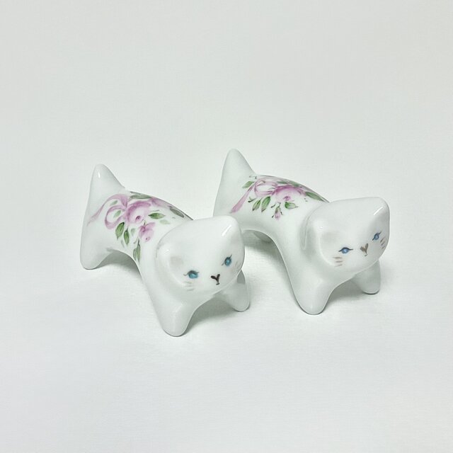 背中にピンクのバラのブーケを載せた、青い眼の子猫を描きました。