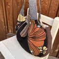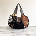ふっくらグラニーバッグ 黒と茶色の花柄