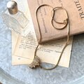 フラットなショートチェーンに縦の向きにセットされた、緩やかにカーブを描くクラウンチャーム。上品でありながらさりげなくユニークさがあり、アーティスティックな印象です。