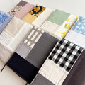 小さな布を繋ぎ合わせて作った、パッチワークのブックカバー。