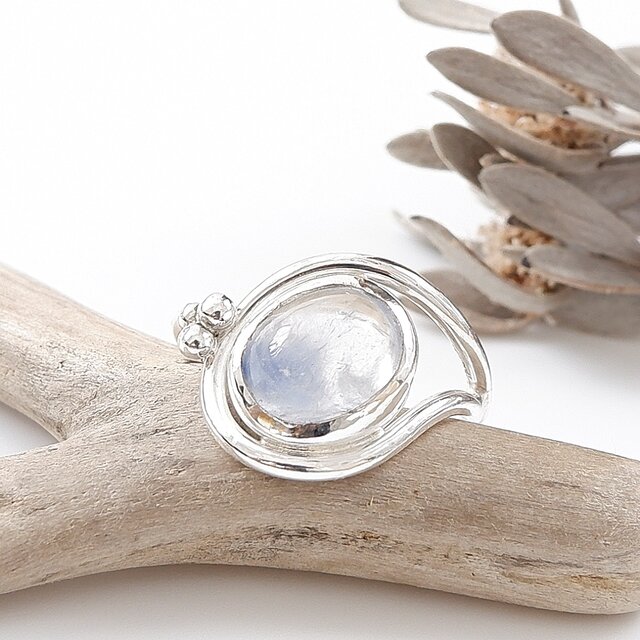 デュモルチェライトインクォーツを流れるようなラインのリングに仕上げました。