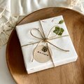 ジュートのリボンと四つ葉のクローバーチャームを添えてお届けします。