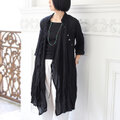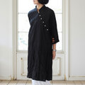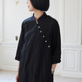 斜めに並んだ貝ボタンがアクセントになり、ボタンを留めればキリッとクールなチャイナテイストのワンピースに、前を開ければ軽やかな羽織りとしても楽しめます。