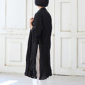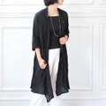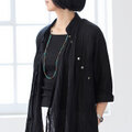シックな黒が大人の落ち着きを引き立て、しなやかな素材感とシワの表情がナチュラルな抜け感を演出します。