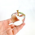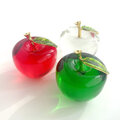 透明感あふれるガラスでかたどられた、りんごモチーフのインテリアオブジェです。ころんとした丸みのあるフォルムと、つややかな光沢が魅力。ゴールドの枝とグリーンの葉がアクセントとなり、上品で洗練された印象を与えます。