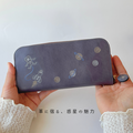 刺繍革財布『宇宙』(牛革)ラウンドファスナー型/インディゴグレイ