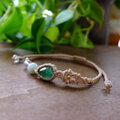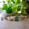 小ぶりサイズながらも、カボションカットされた面が光を反射させ優しい輝きが魅力的なエメラルドです。明るめのコードで美しい石が目を惹く存在感溢れるマクラメブレスレットに仕上げました。