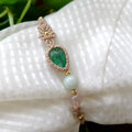 エメラルド(コロンビア産)・翡翠 ヒスイ (ミャンマー産)・ヒマラヤローズクォーツ マクラメ編みブレスレット 1点もの 3606