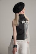 オフホワイトのオーガンジーにチェーン刺繍のレースをリボン型のブローチにしています。