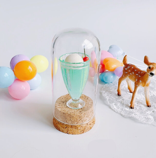 ●ガラスドーム土台のコルク部分にクリームソーダは