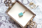 緑のレジンにお花を三輪あしらった、シンプルながらも可憐なペンダント。