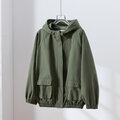 「理想の1枚」立体フードがおしゃれな、ポケットデザインのショートブルゾン アウター グリーン 251001-4