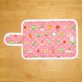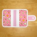 ピンクのドット地にかわいい野菜たちが描かれた生地で作りました♪