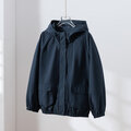 「理想の1枚」立体フードがおしゃれな、ポケットデザインのショートブルゾン アウター 紺色 251001-5