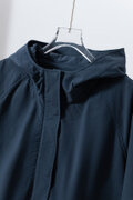 メインのファスナーに加え、スナップボタンを装備。寒い日でもしっかり防ぎ、風を通しません。比翼仕立てのデザインなので、ボタンを上まで閉めればスタンドカラー風としてもお楽しみいただけ、より洗練された印象に。