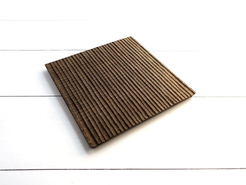 直線的な文様の彫りを入れた木のプレートになります。