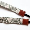 インド刺繍&本革 カメラストラップ 植物柄 ミントカラー