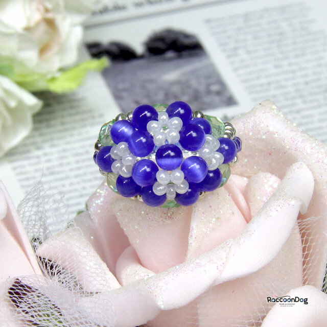 ビーズ リング コスチュームジュエリー ビーズアクセサリー ビーズリング キャッツアイ チェコビーズ ブルー