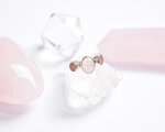 ローズクォーツより色が濃く、ピンクオパールのような透明感を持つグアバクォーツが、中央のローズクォーツをやさしく引き立てます。