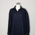 カラーリネン◆シャツワンピース 長袖◆ネイビー◆フリーサイズ(中厚、リネン100%)