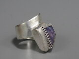 リングのサイズは13号、重さは23g、最大幅は27mm、手のひら側は10mm、金属部分は純銀です。