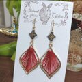 エスニックデザイン♡エレガントリーフピアス レッド ハンドメイド No.1309