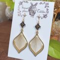 エスニックデザイン♡エレガントリーフピアス シルクホワイト ハンドメイド No.1675