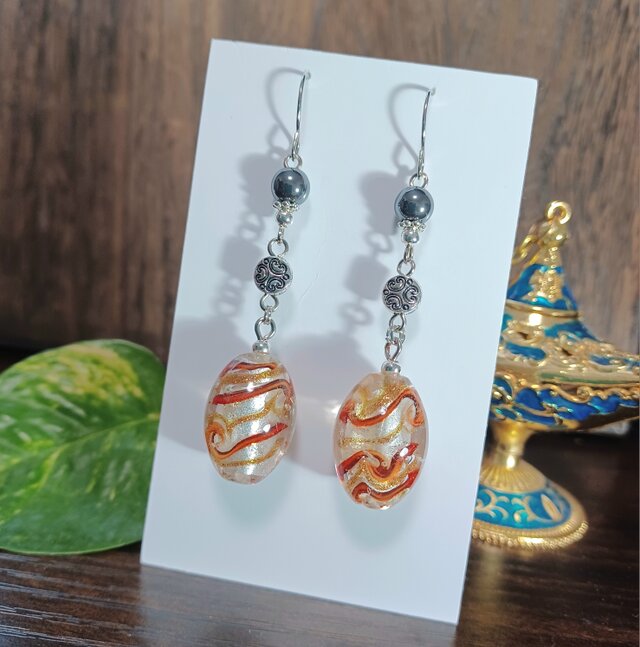 アラビアンピアス☪︎魔法のランプ レッド×ヘマタイト ハンドメイドNo.1237