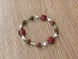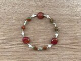 深みのあるレッドブラウンを基調に、グリーンとブラウンのマーブルビーズを組み合わせたブレスレット。