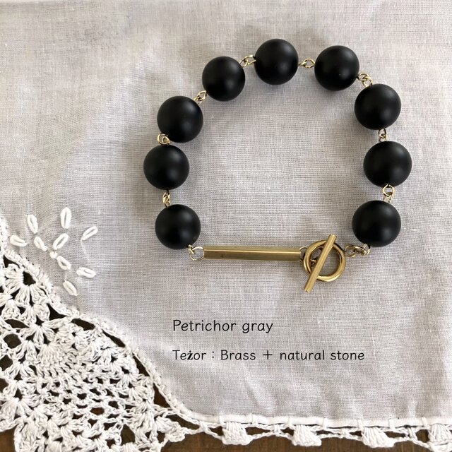 アンティークの様な落ち着いた輝きをもつ真鍮を クールなマットブラックのオニキスとあわせてブレスレットにしました。