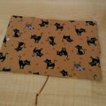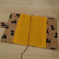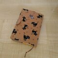 表紙サイズ 15×36.5㎝の 文庫本に合わせて 作りました(*^^) 猫柄に 元気な黄色です♪ 栞ひもにはビーズをつけました。