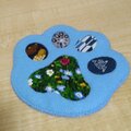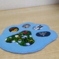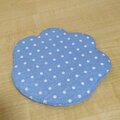 ランダムに選んだ 生地とフェルトで 作りました(*^^) 12㎝位の大きさです。 間に薄いキルト芯を 挟んでいます。