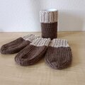 脚周り19~21㎝位用。 履かせたときの高さ 10~11㎝位です。 くすんだベージュ×ブラウン。 アクリル100%。 手洗い可。 *椅子の脚には不向きです