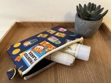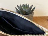 ラミネートポーチ1枚仕立ての物が多いですが、裏地つきにして内側の汚れを防ぎスッキリ丈夫にしています
